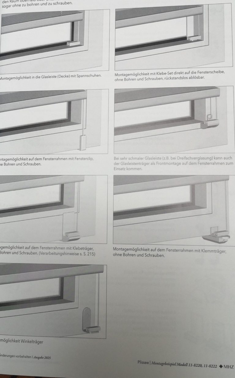 Fest montierte Plissee, die beste Position am Fenster. Der Sitz ist Top. Die Haltbarkeit ist sehr hoch, 5 ..10..20 Jahre.